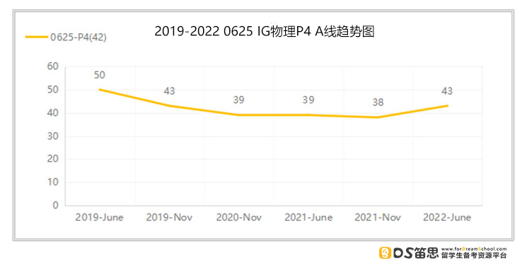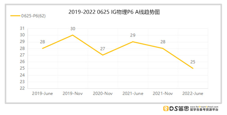 P6分数线情况 总分:40分 从上图中可以得知,近6次P6考试A线的平均分为27.8分 今年A线:25分(低于平均分2.8分,比上一考季低了3分) 考试难度变化:从数据反映的情况来看,今年6月P6的考试难度相较于之前的几次是加大了些。 稳A Tips 接下来要参加考试的同学,要想在P6考试中稳拿A,在日常的练习和测试中则至少要做对69.5%的分值题。 以上是关于IGCSE物理(0625)的部分模块的分析,接下来就看看基于IG物理学科整体,要稳住A*需要达到什么样的水准?